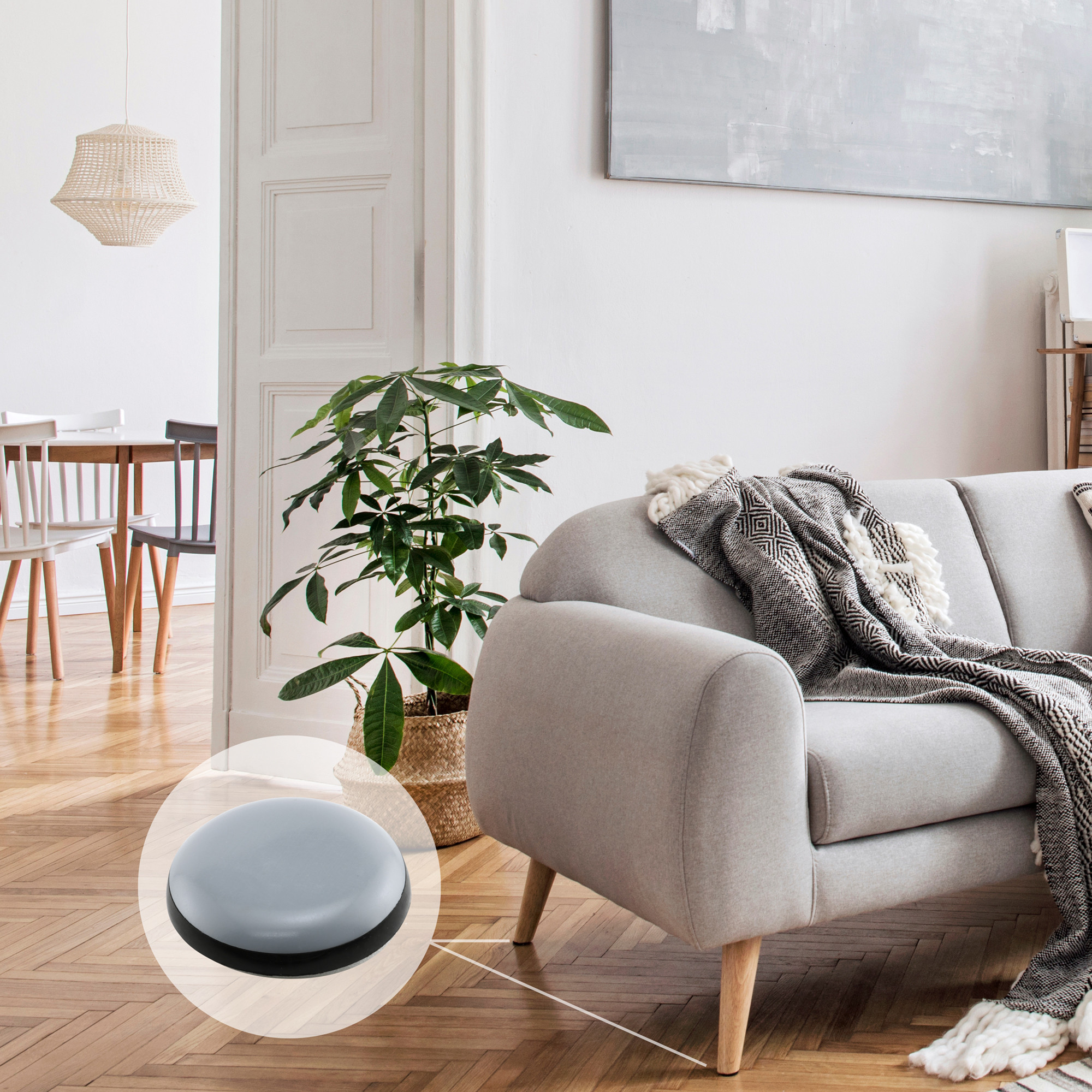 1 in. Gray/Black Plastic Round Self-Stick Permanent Furniture Pads (8 Pack)