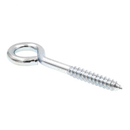 Features a closed loop or "eye" at one end and lag/wood screw threads at the opposite end