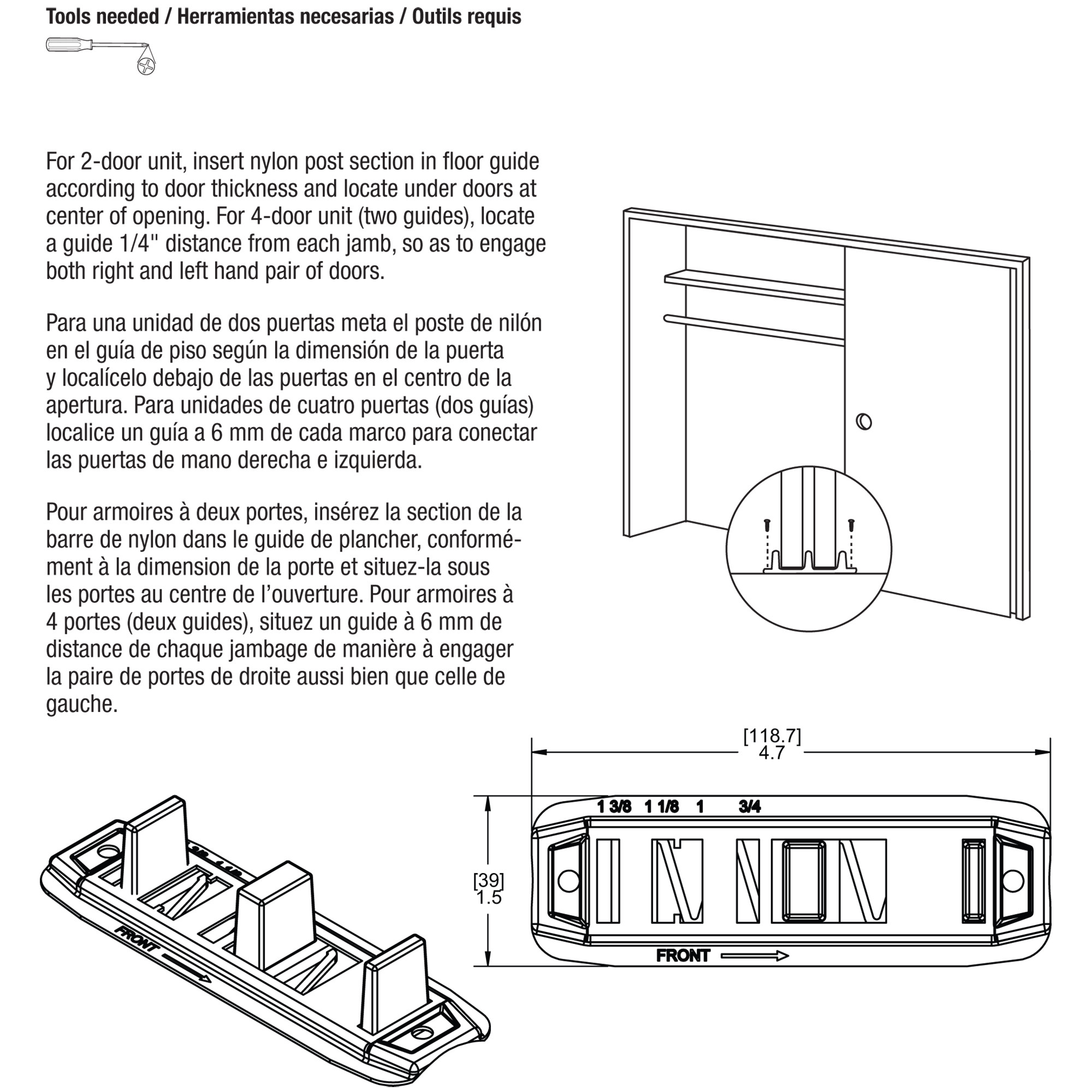 Stamped Steel, Adjustable, Closet Door, Floor Guide (2 Pack)