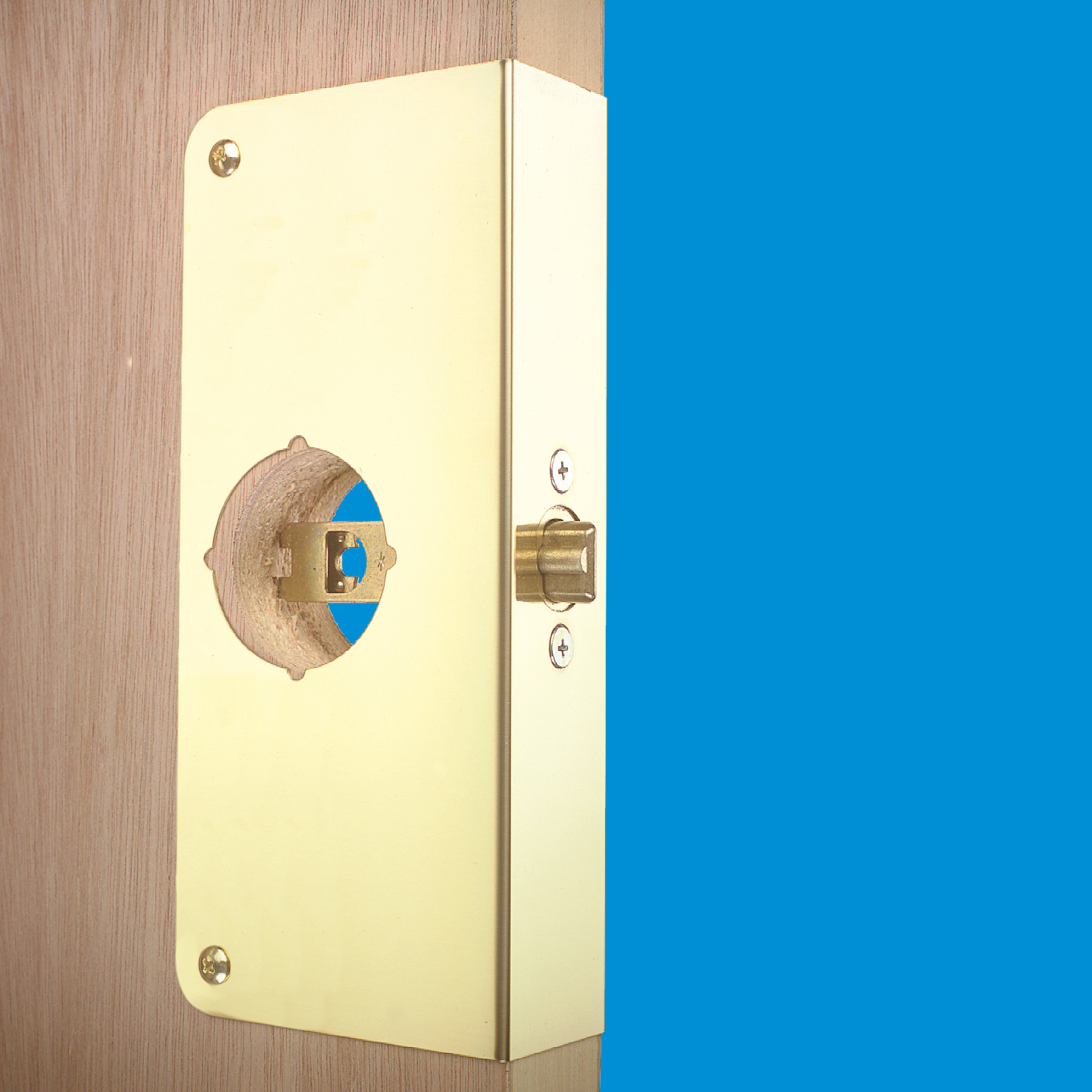 U 9547-L| Brass Single Bore Hole Lock and Door Reinforcement Plate for 1-3/8 in. Thick Doors, Brass Finish (Single Pack)