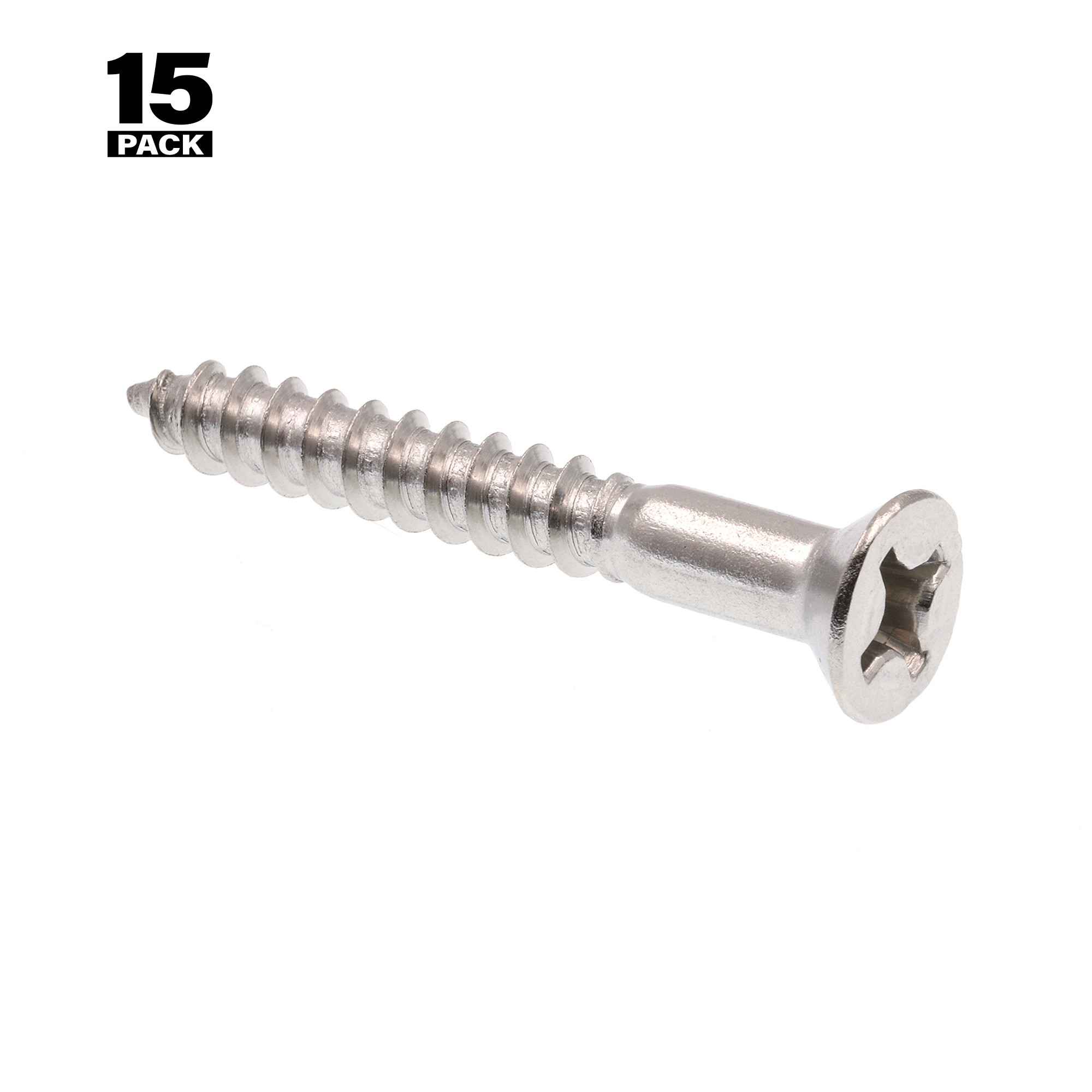 Wood Screws, Flat Head, Phillips Drive, #10 X 1-1/2 in, Grade 18-8 Stainless Steel (15 Pack)