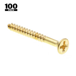 Wood Screws, Flat Head, Phillips Drive, #6 X 1-1/4 in., Solid Brass (100 Pack)