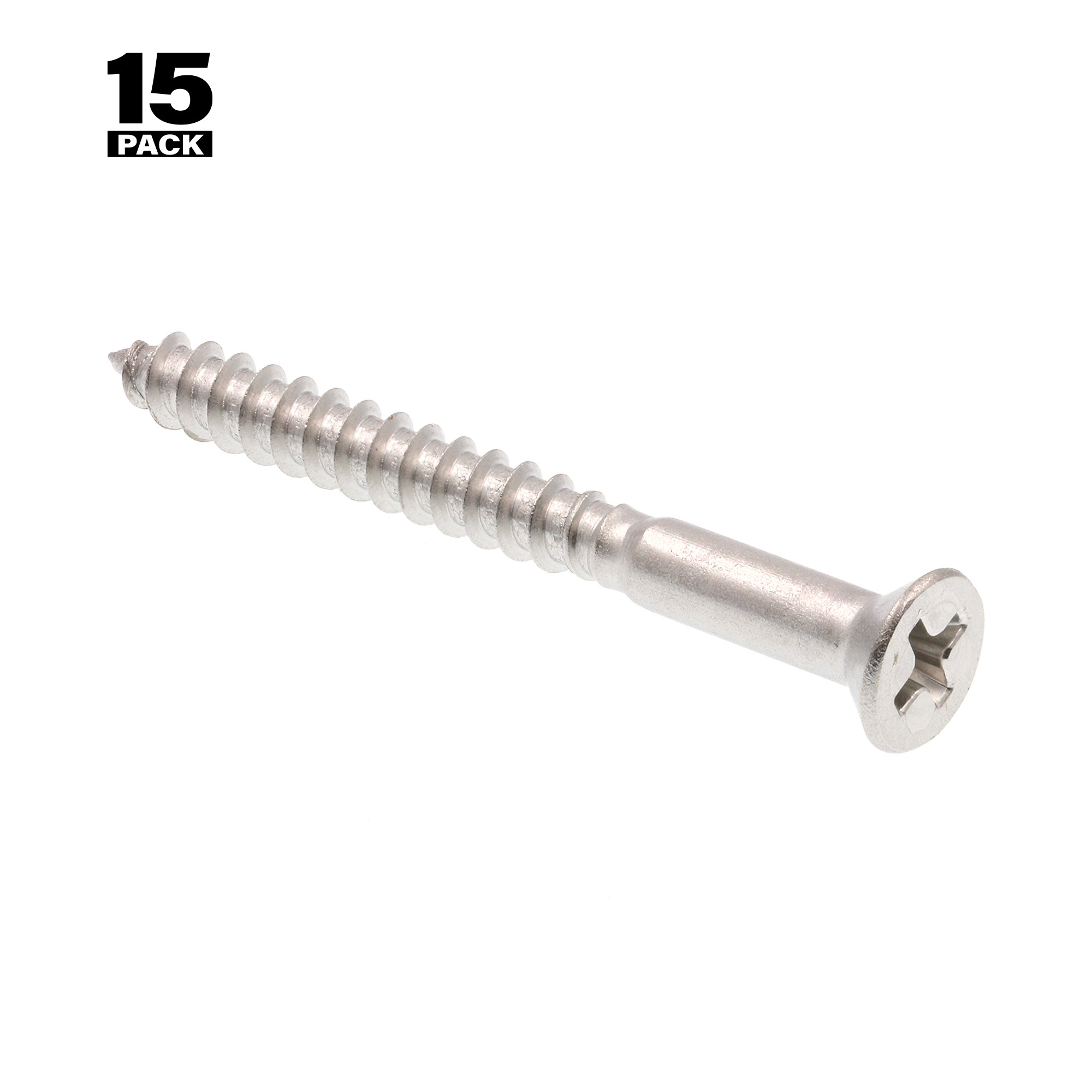 Wood Screws, Flat Head, Phillips Drive, #8 X 1-3/4 in, Grade 18-8 (15 Pack)